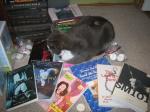 For some reason I found Bob Dylan the cat sleeping on two piles of BDSM books on two separate occasions, I think I should've taken a pic of him sleeping on the bigger pile :P